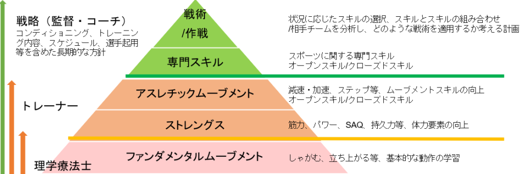 パフォーマンスアップには競技スキルトレーニングをするだけでは不十分なことが多く、包括的な視点をもってトレーニングすることが重要になります。